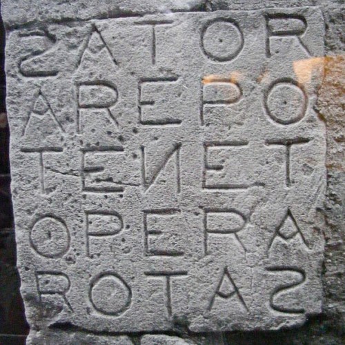 ie frühesten Funde dieser in Stein gemeißelten, quadratisch angeordneten Buchstabenfolge stammen aus vorchristlicher Zeit und wurden in Pompeji entdeckt. Das Palindrom ist dort in der „Pälastra” in eine der Säulen eingeritzt. Die Palästra war übrigens eine römische Sportarena für das Training der Ringkämpfe und für Wettkämpfe.